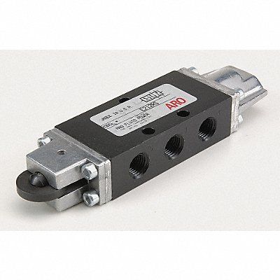 Manual Air Control Valve Valve Ways and Positions 4-Way/2-Position Valve Port Size 1/4 in Connection NPT Valve Actuator / Return Roller Cam / Spring Max CFM - Valves 26 cfm Valve Max Pressure Rating 150 psi Valve Temp Range -10 Degrees to 180 Degrees F Coefficient of Volume 0.7 Overall Length 6 7/16 in Overall Height 1 in Overall Width 1 3/4 in Series E Manual Air Control Valve
