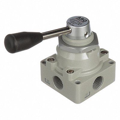 Manual Air Control Valve Valve Ways and Positions 4-Way/3-Position Valve Port Size 1/2 in Connection NPT Valve Actuator / Return Rotary Lever / Manual Max CFM - Valves 85 cfm Valve Max Pressure Rating 140 psi Valve Temp Range 15 Degrees to 122 Degrees F Center Position Closed Coefficient of Volume 2.4 Body Material Aluminum Overall Length 3 in Overall Height 4 9/32 in Overall Width 3 in Series MaxAir Manual Air Control Valve