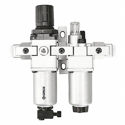 Filter/Regulator/Lubricator Air Inlet Size 1/2 in Air Inlet Type NPT Maximum Flow Rate 99 cfm Maximum Operating Pressure 215 psi Filter Rating 40 micron Filter Bowl Material Aluminum Filter Bowl Capacity 3 oz Drain Type Semi-Automatic Overall Width 8 11/16 in