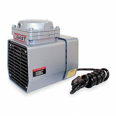 Compressor/Vacuum Pump Output Power 1/8 hp Voltage 115V AC Maximum Vacuum 25.5 in Hg Maximum Continuous Pressure 60 psi Maximum Intermittent Pressure 60 psi Maximum Flow Rate 0.55 cfm @ 30 psi 1.1 cfm @ 0 psi Inlet Size 1/4 in Inlet Connection Type NPT Outlet Size 1/4 in Outlet Connection Type NPT Compressor Type Diaphragm Current Rating 4.2 A