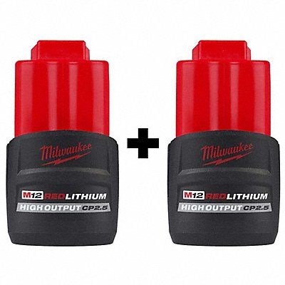 Battery Pack Battery Capacity 2.5 Ah Battery Chemistry Li-Ion Charger Included No Number of Batteries Included 2 Terminal Type Flat Contact Recessed Contact Voltage 12V DC Cordless Tool Kit Contents (2) Batteries Number of Cells 3 Battery Series CP Cordless Tool Battery Platform Milwaukee M12 IEC Code Number Not Applicable Overall Height 3 1/4 in Overall Length 2 in Overall Width 1 7/8 in Weight 0.5 lb Wireless Tool Tracking No