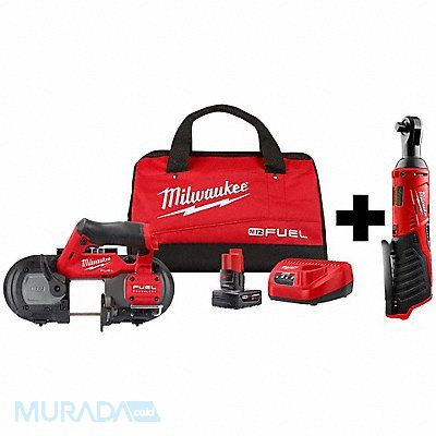 Band Saw Kit and Ratchet Cordless Tools Included M12 Cordless 3/8 in Ratchet (Tool Only) (2457-20) M12 FUEL Compact Band Saw (2529-20) Voltage 12V Power Source Cordless Number of Tools 2 Battery Capacity 4Ah Includes 30-9/16 in 12/14 TPI Compact Extreme Thin Metal Band Saw Blade Contractors Bag M12 Cordless 3/8 in Ratchet (Tool Only) (2457-20) M12 FUEL Compact Band Saw (2529-20) M12 REDLITHIUM(TM) XC 4 Extended Capacity Battery Pack (48-11-2440) Tool Brand Milwaukee Series M12 FUEL