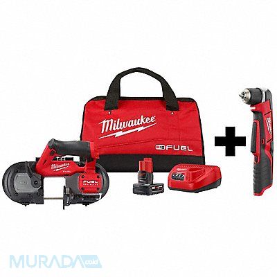 Band Saw Kit and Right Angle Drill Cordless Tools Included M12 FUEL Compact Band Saw (2529-20) Voltage 12V Power Source Cordless Number of Tools 2 Battery Capacity 4Ah Includes 30-9/16 in 12/14 TPI Compact Extreme Thin Metal Band Saw Blade Contractors Bag M12 FUEL Compact Band Saw (2529-20) M12 REDLITHIUM(TM) XC 4 Extended Capacity Battery Pack (48-11-2440) Tool Brand Milwaukee Series M12 FUEL Battery Included 38D764 Number of Batteries Included 1 Battery Model No 48-11-2440