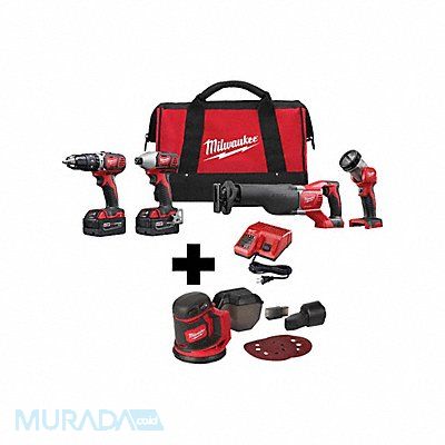 Cordless Combination Kit Cordless Tools Included M18 1/4 in Hex Impact Driver (2656-20) M18 Compact 1/2 in Hammer Drill/Driver (2607-20) M18 Random Orbit Sander (2648-20) M18 SAWZALL Reciprocating Saw (2620-20) Voltage 18V DC Power Source Cordless Number of Tools 5 Battery Capacity 3Ah Includes Contractors Bag M18 1/4 in Hex Impact Driver (2656-20) M18 Compact 1/2 in Hammer Drill/Driver (2607-20) M18 Random Orbit Sander (2648-20) M18 SAWZALL Reciprocating Saw (2620-20)