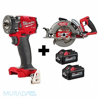 Impact Wrench Kit Cordless Tools Included Circular Saw Impact Wrench Voltage 18V DC Power Source Cordless Number of Tools 2 Battery Capacity 6.0Ah Includes (2) Batteries Tool Brand Milwaukee Series M18 FUEL Number of Batteries Included 2 Battery Model No 481Z45 Battery Series M18 REDLITHIUM Cordless Tool Kit Contents (2) Bare Tools (2) Batteries Included Fastening Tools Impact Wrench (250 ft-lb) Included Saws Grinders Circular Saw (5800 RPM)