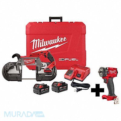 Band Saw Kit Cordless Tools Included Band Saw Impact Wrench Voltage 18V DC Power Source Cordless Number of Tools 2 Battery Capacity (2) 5.0Ah Includes (2) Batteries Charger Tool Brand Milwaukee Series M18 FUEL Battery Included (2) 35GJ99 Number of Batteries Included 2 Battery Model No 35GJ99 Battery Series M18 REDLITHIUM Charger 23Y581 Charger Included Yes Cordless Tool Kit Contents (2) Bare Tools (2) Batteries (1) Charger (1) Carrying Case