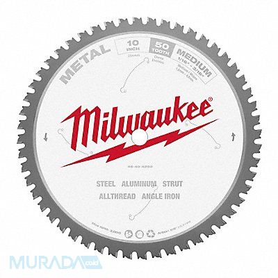 Circular Saw Blade Blade Dia 10 in Arbor Size 5/8 in Arbor Shape Round Number of Teeth 50 Primary Material Application Steel Steel Alloys Materials Cut Ferrous Metals Non-Ferrous Metals Metal Cutting Type Thick Metal Blade Thickness 0.188 in Cut Width 0.079 in Tip Material Carbide Tipped Hook Angle 0 Degrees Tooth Grind ATB For Use With Saw Type Circular Saws Application For Cutting Metals
