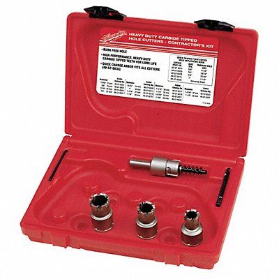 Hole Cutter Kit Primary Material Application Metal Materials Cut Steel Plate Arbor Design Included Tooth Material Carbide Tipped Number of Teeth (Hole Cutters Only) 6 Max Cutting Depth 1/2 in Impact Rated No Hole Cutter Sizes (Hole Cutters) 11/16 in 13/16 in 15/16 in Saw Size Range 11/16 in to 15/16 in Number of Hole Cutters 3 Shank Size 1/2 in 3 Flat Pilot Drill Size 1/4 in dia x 2 3/4 in L Number of Pieces 5