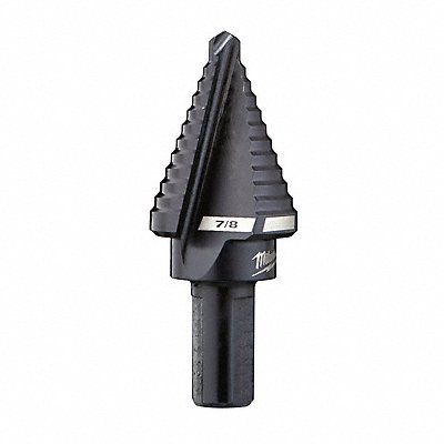 Step Drill Bit High Speed Steel Black Oxide 7/8 in to 1 1/8 in Size Range Straight with Three Flats 7/8 in Shank Diameter 2 3/16 in Overall Length