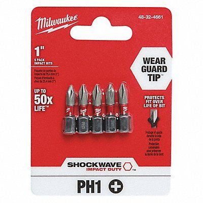 Insert Bit Application - Tools Impact Fastening Tool Tip Size #1 Hex Shank Size 1/4 in Overall Bit Length 1 in Bit Style Phillips Shank Style Hex Fastening Tool Material S2 Steel Single End/Double End Single End Includes (5) PH1 Insert Bits SAE or Metric SAE Impact Rated Yes Finish Black Phosphate Insert Bit Package Quantity 5