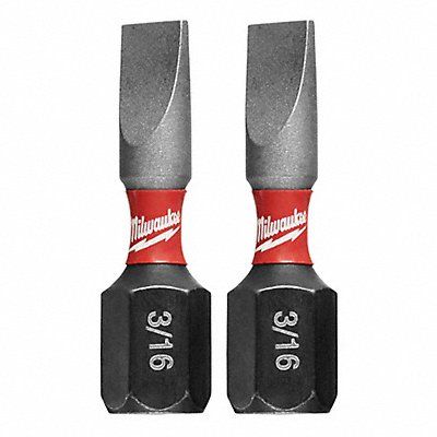 Insert Bit Application - Tools Impact Fastening Tool Tip Size 6F-8R Hex Shank Size 1/4 in Overall Bit Length 1 in Bit Style Slotted Shank Style Hex Fastening Tool Material S2 Steel Single End/Double End Single End Includes SHOCKWAVE(TM) Insert Bit Slotted 3/16 in 2PK (48-32-4417) SAE or Metric SAE Impact Rated Yes Finish Black Phosphate Insert Bit Package Quantity 2