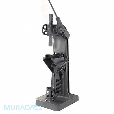 Arbor Press Force in Tons 5 ton Force Range (Lbs.) 0 to 10000 Swing (In.) 10 in Table Work Surface (In.) 9-1/4 x 10 Anvil Dia Work Area (In.) 11 5/8 in Range of Slot Widths (In.) 1-3/8 to 4-5/8 Max Work Height (In.) 26 in Ram Dimensions (In.) 2 x 2 x 23 Height (In.) 58 in Width (In.) 21 1/2 in Depth (In.) 29 in Base Size (In.) 21.5 x 29 Machined Gray Iron Cast Frame With Heat Treated And Ground Spindle Heat Treated Ram And Machined Table Plate Construction