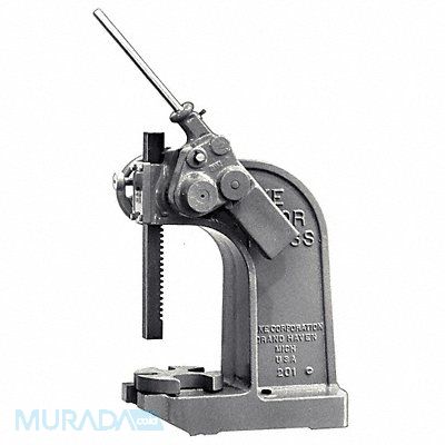 Arbor Press Force in Tons 6 ton Force Range (Lbs.) 0 to 12000 Swing (In.) 7 3/4 in Table Work Surface (In.) 6-3/4 x 6-3/4 Anvil Dia Work Area (In.) 8 1/8 in Range of Slot Widths (In.) 1/2 to 3-1/16 Max Work Height (In.) 15 in Ram Dimensions (In.) 1.5 x 1.5 x 19 Height (In.) 26 in Width (In.) 8 1/4 in Depth (In.) 20 in Base Size (In.) 8-1/4 x 20 Machined Gray Iron Cast Frame With Heat Treated And Ground Spindle Heat Treated Ram And Machined Table Plate Construction