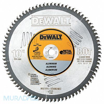 Circular Saw Blade Series DW Blade Dia 10 in Max Blade Speed 6 000 RPM Arbor Size 5/8 in Arbor Shape Round Diamond Knockout No Number of Teeth 80 Max Cutting Depth 4 in Primary Material Application Aluminum Soft Metals Materials Cut Aluminum Non-Ferrous Metals Metal Cutting Type Solid Stock Cut Width 0.11 in Tip Material Carbide Tipped Hook Angle 5 Degrees Tooth Grind TCG For Use With Saw Type Miter Saws Radial Arm Saws Table Saws Blade Type Metal Cutting