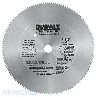 Circular Saw Blade Series DW Blade Dia 7 1/4 in Max Blade Speed 7 000 RPM Arbor Size 5/8 in Arbor Shape Round Diamond Knockout No Number of Teeth 140 Max Cutting Depth 2 3/8 in Primary Material Application Wood Materials Cut Plywood Wood Cutting Type Plywood Cut Width 0.065 in Tip Material Carbide Tipped Hook Angle 15 Degrees Tooth Grind ATB For Use With Saw Type Circular Saws Blade Type Finishing Plate Thickness 0.075 in