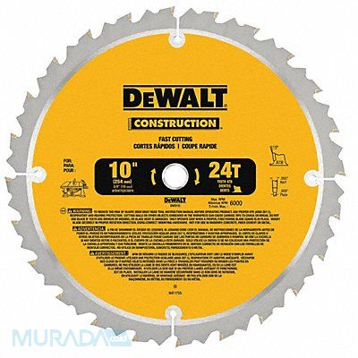 Circular Saw Blade Series DW Blade Dia 10 in Max Blade Speed 7 000 RPM Arbor Size 5/8 in Arbor Shape Round Diamond Knockout No Number of Teeth 24 Max Cutting Depth 4 1/2 in Primary Material Application Wood Materials Cut Wood Wood Cutting Type Ripping Cut Width 0.095 in Tip Material Carbide Tipped Hook Angle 15 Degrees Tooth Grind ATB For Use With Saw Type Miter Saws Radial Arm Saws Table Saws Blade Type Ripping Plate Thickness 0.069 in Application For Wood Cutting