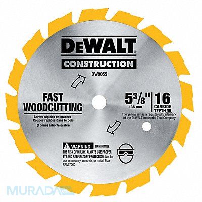 Circular Saw Blade Series DW Blade Dia 5 3/8 in Max Blade Speed 7 000 RPM Arbor Size 5/16 in Arbor Shape Round Diamond Knockout No Number of Teeth 16 Max Cutting Depth 2 in Primary Material Application Nail-Embedded Wood Materials Cut Nail-Embedded Wood Wood Cutting Type Ripping Cut Width 0.059 in Tip Material Carbide Tipped Hook Angle 20 Degrees Tooth Grind ATB For Use With Saw Type Circular Saws Blade Type Ripping Plate Thickness 0.039 in Application For Wood Cutting