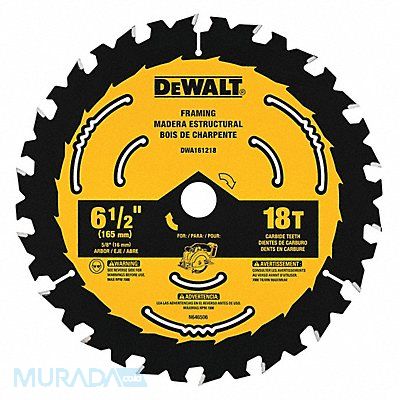 Circular Saw Blade Blade Dia 6 1/2 in Max Blade Speed 7 000 RPM Arbor Size 5/8 in Arbor Shape Round Diamond Knockout No Number of Teeth 18 Max Cutting Depth 6 1/2 in Primary Material Application Wood Materials Cut Wood Wood Cutting Type Framing Cut Width 0.065 in Tip Material Carbide Tipped Hook Angle 18 Degrees Tooth Grind ATB+R For Use With Saw Type Circular Saws Blade Type Framing Plate Thickness 0.039 in Application For Wood Cutting