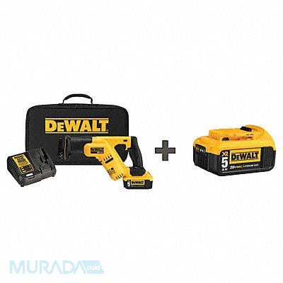 Reciprocating Saw Kit Voltage 20.0 Battery Capacity 5 Ah Includes Battery Pack Charger 4-Position Blade Clamp LED Light Contractor Bag Features Up to 60 Percent More Capacity Than Standard 20V MAX Batteries (DCB200)
