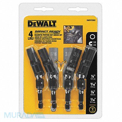 Nutsetter Set Measurement System English/Imperial Fastening Size 1/4 in 5/16 in 3/8 in 7/16 in Tool Insertion Size 1/4 in Hex Overall Length 3 1/2 in Impact Rated Yes Magnetized Tip Yes Finish Black Phosphate Material Steel Slide to Clean No Number of Nutsetters Included 4 Tool Brand DEWALT(R)