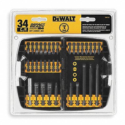 Screwdriver Bit Set No of Pieces 34 Hex Shank Size 1/4 in Fastening Tool Material Steel Impact Rated Yes Power Includes (1) 1 in PH1 (4) 1 in PH2 (4) 1 in PR2 (1) 1 in PH3 (1) 2 in PH2 (1) 3-1/2 in PH2 (1) 1 in SQ1 (4) 1 in SQ2 (1) 1 in SQ3 (1) 2 in SQ2 (1) 3-1/2 in SQ2 (1) 1 in SL6 (2) 1 in SL8 (1) 1 in SL10 (1) 2 in SL8 (1) 3-1/2 in SL8 1 Each T15 T20 T25 T30 1 in Torx Bits 1 Each 1