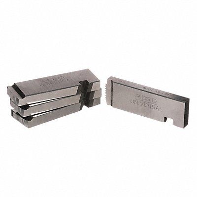 Replacement Pipe Die Compatible Pipe Size 1/2 in to 3/4 in Compatible Material Type Aluminum Galvanized Steel Steel Thread Type NPT Compatible Thread Direction Right Hand Die Material High Speed Steel Die Head Compatibility Ridgid Machine Universal Compatible Threader Series 1215 1224 300 535 Application Pipe Number of Dies 4 Threads Per Inch 14 Compatible Threader Type Threading Machine Compatible Die Head Grainger Part Number 4CW40 4Z974 5A195