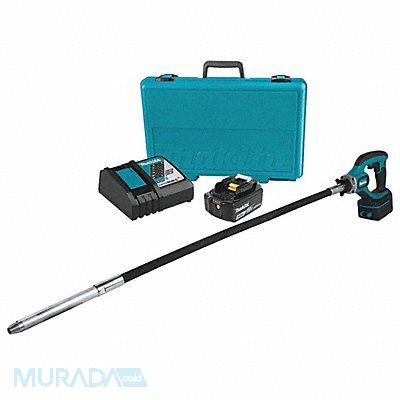 Cordless Concrete Vibrator Voltage 18V DC Shaft Length 4 ft Head Diameter 1 in Radius of Vibration 4 15/16 in Vibrations per Minute 13 000 vpm Brushless Motor Yes Cordless Tool Kit Contents (1) Bare Tool (1) Charger (2) Batteries Battery Capacity 5.0 Ah Head Length 8 11/16 in Tool Length 58 1/2 in Tool Weight 7.7 lb Battery Model Number BL1850B Battery Series 18V LXT Charger Included Yes Charger Model Number DC18RC Concrete Vibrator Type Handheld