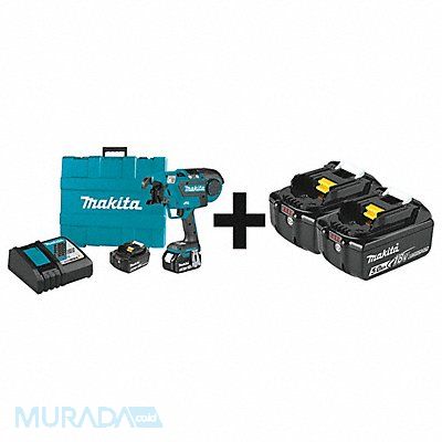 Rebar Tying Tool Kit Voltage 18V DC Maximum Rebar Size Combination No 5 x No 5 Tying Speed 0.8 sec/Tie Maximum Ties per Coil 120 Cordless Tool Kit Contents (1) Bare Tool (1) Charger (4) Batteries Power Source Cordless Tool Weight 5.7 lb Brushless Motor Yes Minimum Rebar Size Combination No 3 x No 3 Battery Capacity 5.0 Ah Battery Model Number BL1850B Battery Series 18V LXT Charger Included Yes Charger Model Number DC18RC Compatible Wire Gauge 21 ga