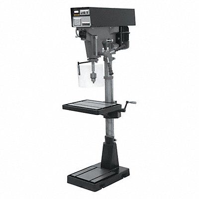 Floor Drill Press Primary Material Application Metal Power Down Feed Included No Drill Press Type Floor Stand Drill Press Application Drilling Speed Control Variable Speed Adjustment Mechanical Variable Speed Drive System Swing 15 in Spindle-to-Column Distance 7 1/2 in Horsepower 1 hp Voltage 115/230V AC Spindle Taper 2MT Number of Speeds Variable Chuck Size 1/2 in Chuck Style Keyed Guard Included Yes Coolant System No Quill Diameter 2 1/4 in Drilling Capacity in Steel 1/2 in