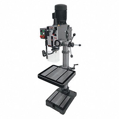 Floor Drill Press Primary Material Application Metal Power Down Feed Included No Drill Press Type Floor Stand Drill Press Application Drilling Tapping Speed Control Fixed Speed Adjustment Gear Head Swing 20 in Spindle-to-Column Distance 10 in Horsepower 2 hp Voltage 230V AC Spindle Taper 3MT Number of Speeds 12 Guard Included Yes Coolant System No Quill Diameter 3 in Tapping Capacity in Steel 15/16 in Tapping Capacity in Stainless Steel 3/4 in