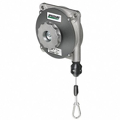 Tool Balancer Product Type Tool Balancer For Tool Weighing 4.00 to 6.00 lb Maximum Tool Weight 6 lb Minimum Tool Weight 4 lb Cable Length 5 ft Cable Material Steel Housing Material Die Cast Aluminum Reel Mount Type Not Included Reel Height When Retracted 4 3/8 in Lock Mechanism Non-Locking Rotation Type Fixed Tool Attachment Type Spring Clip Shock Absorption Not Included Spring Fail Mechanism No Drum Type Standard Features 3 Suspension Points Hanger Opening Size 3/16 in