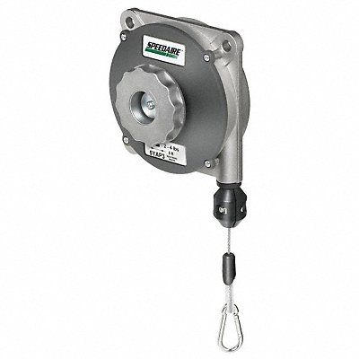 Tool Balancer Product Type Tool Balancer For Tool Weighing 2.00 to 4.00 lb Maximum Tool Weight 4 lb Minimum Tool Weight 2 lb Cable Length 5 ft Cable Material Steel Housing Material Die Cast Aluminum Reel Mount Type Not Included Reel Height When Retracted 4 3/8 in Lock Mechanism Non-Locking Rotation Type Fixed Tool Attachment Type Spring Clip Shock Absorption Not Included Spring Fail Mechanism No Drum Type Standard Features 3 Suspension Points Hanger Opening Size 3/16 in