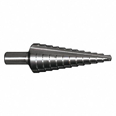 Step Drill 1/4-3/4 x 1/16 High Speed Steel Bright (Uncoated) 1/4 in to 3/4 in Size Range Straight with Three Flats 3/8 in Shank Diameter 2 3/4 in Overall Length