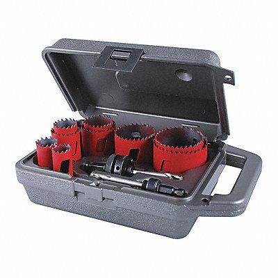 Hole Saw Kit Primary Material Application General Purpose Materials Cut Duct Mild Steel Nail-Embedded Wood Non-ferrous Metals Pipe Plastic Stainless Steel Tube Arbor Design Included Tooth Material Bi-Metal Teeth per Inch 5/6 Max Cutting Depth 1 7/8 in Impact Rated No Number of Hole Saws 9 Saw Size Range 3/4 in to 2 1/2 in Hole Saw Sizes (Hole Saws) 3/4 in 7/8 in 1 1/8 in 1 3/8 in 1 1/2 in 1 3/4 in 2 in 2 1/4 in 2 1/2 in Thread Size 1/2 In.-20 5/8 In.-18
