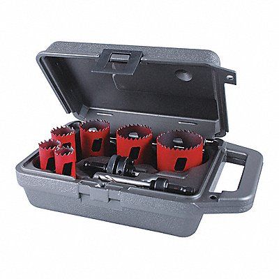 Hole Saw Kit Primary Material Application General Purpose Materials Cut Duct Mild Steel Nail-Embedded Wood Non-ferrous Metals Pipe Plastic Stainless Steel Tube Arbor Design Included Tooth Material Bi-Metal Teeth per Inch 5/6 Max Cutting Depth 1 7/8 in Impact Rated No Number of Hole Saws 6 Saw Size Range 3/4 in to 2 1/4 in Hole Saw Sizes (Hole Saws) 3/4 in 7/8 in 1 1/8 in 1 1/2 in 1 3/4 in 2 1/4 in Thread Size 1/2 In.-20 5/8 In.-18 Shank Size 3/8 in Hex 7/16 in Hex