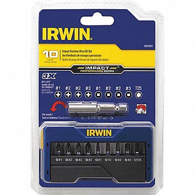 Insert Bit Set No of Pieces 10 Hex Shank Size 1/4 in Fastening Tool Material Steel Impact Rated Yes Impact Includes PH1 (2) PH2 PH3 SQ1 (2) SQ2 SQ3 T25 Bit Length 1 in