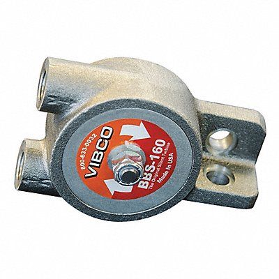 Pneumatic Vibrator Housing Material Aluminum Outlet Connection Size 1/4 in Outlet Connection Type NPT Air Flow Rate 5 cfm @ 60 psi 7 cfm @ 80 psi Maximum Force 160 lbf Inlet Connection Size 1/4 in Inlet Connection Type NPT Maximum Vibration Speed 9 000 vpm Maximum Bin Weight Capacity 1 600 lb Overall Height 2.56 in Overall Length 4.13 in Overall Width 2.01 in Sound Level 67 dBA Duty Cycle Continuous Pneumatic Vibrator Type Turbine Force @ PSI 160 lbf @ 80 psi 60 lbf @ 60 psi
