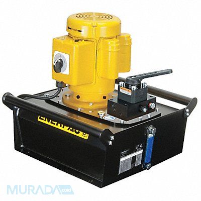 Hydraulic Pump Electric Reservoir Capacity (Cu.-In.) 231 cu in Reservoir Capacity (Gal.) 1 gal Oil Displacement @ 100 PSI 450 cu in/min Oil Displacement @ 700 PSI 385 cu in/min Oil Displacement @ 5000 psi 42 cu in/min Oil Displacement @ 10 000 PSI 40 cu in/min Oil Displacement @ 0-200 PSI 445 cu in/min Oil Displacement @ 200-10 000 PSI 40 to 445 cu in/min 1 hp HP Voltage 115 8.8 A Amps AC Motor Type Induction Fluid Port NPT (In.) 3/8 75 dBA Reservoir Material Steel
