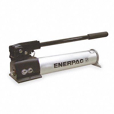 Hydraulic Hand Pump Number of Stages 2 Max Pressure 1st Stage 200 psi Max Pressure 2nd Stage 10 000 psi Max Handle Effort 93 lb Displacement per Stroke 1st Stage 0.68 cu in Displacement per Stroke 2nd Stage 0.15 cu in Reservoir Capacity 55 cu in Port Size 3/8 in NPT Overall Length 21 in Overall Width 4 3/4 in Overall Height 7 in Anodized Aluminum Pump Material Anodized Aluminum Reservoir Material Fiberglass Handle Material Oil Included Yes