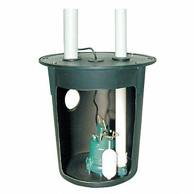 Sump Pump System HP 3/10 Rated Voltage 120V AC Hz 60 Hz Phase - Pumps 1 Switch Actuation Vertical Float Switch Electrical Connection Integral Pump Body Material Cast Iron Impeller Material Polypropylene Basin Material Polypropylene Flow Rate @ 5 ft of Head 43.0 gpm Flow Rate @ 10 ft of Head 34.0 gpm Flow Rate @ 15 ft of Head 19.0 gpm Max Head 19.0 ft Basin Dia 18 in Basin Capacity 9.7 gal Basin Height 22 in Discharge 1 1/2 in FNPT Cord Length 9 ft