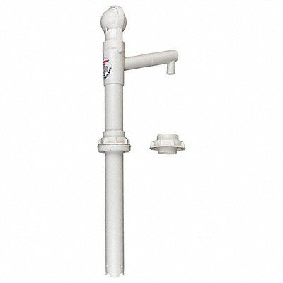 Hand Operated Drum Pump Action Type Piston Pump Body Material Polypropylene Wetted Materials Polyethylene Polypropylene Seal Material Polyethylene Gasket Material NA Discharge Tubing Material Polypropylene and Polyethylene For Use On 15 and 30 gal Drums Maximum Head 6 ft Max Temp 207 Degrees F Ounces per Stroke 15 oz Max Viscosity 8 000 cps Inlet Size 1-5/8 in Outlet Size 13/16 in HB Discharge Tube Outlet OD Size 1 in Discharge Tube Length 6-3/8 in