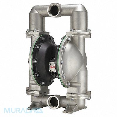 Double Diaphragm Pump Air Intake Connection Size 3/4 in Air Intake Connection Type NPTF Check Seat Material 316 Stainless Steel Diaphragm Material PTFE Feet of Head (Maximum) 289 ft Flow Rate (Maximum) 237 gpm Manifold Connection Single Port Media Discharge Connection Size 3 in Media Discharge Connection Type NPTF Media Intake Connection Size 3 in Media Intake Connection Type NPTF Media Temperature (Maximum) 225 Degrees F Operating Pressure (Maximum) 10 psi