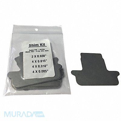 Shim Kit Includes 2 x 0.030 in Shim 4 x 0.005 in Shim 4 x 0.010 in Shim 4 x 0.051 in Shim Material Stainless Steel Product Type Shim Kit Overall Length 5 in Compatible with Brand Dayton Compatible with Pump Type Peristaltic Chemical Metering Pump Overall Height 0.13 in