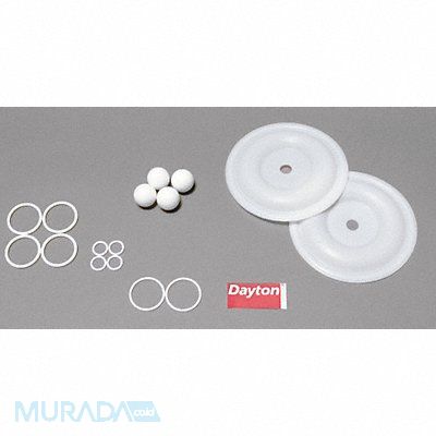 Diaphragm Pump Repair Kit Check Ball Material PTFE Compatible with Grainger Part Number 22A605 34TJ41 6PY53 6PY53A 6PY54 6PY54A Compatible with Manufacturer Model Number 22A605 34TJ41 6PY53 6PY53A 6PY54 6PY54A Diaphragm Material PTFE Number of Check Balls 4 Number of Diaphragms 2 Number of O-Rings 12 Number of Seals 0 Valve Type Ball Product Type Fluid End Repair Kit Media Intake Pressure (Maximum) Not Applicable Compatible with Pump Type Air Operated Double Diaphragm Pump