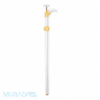 Hand Operated Drum Pump Action Type Piston Pump Body Material Polypropylene Wetted Materials Polypropylene Steel Viton Seal Material Viton Discharge Tubing Material Polypropylene For Use On 15 30 and 55 gal Drums Max Temp 122 Degrees F Ounces per Stroke 14 oz Max Viscosity 8 000 SUS Inlet Size 1 in Outlet Size 1/2 in Discharge Tube Outlet ID Size 1/2 in Discharge Tube Outlet OD Size 37/64 in Discharge Tube Length 5 in Suction Tube Length 39.5000 in