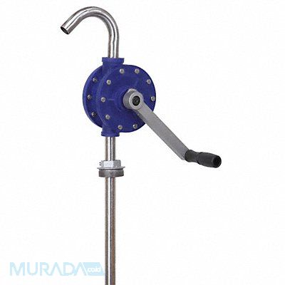 Hand Operated Drum Pump Action Type Rotary Wetted Materials 304 Stainless Steel Glass Filled Polypropylene PTFE Ryton Seal Material PTFE Gasket Material Paper Discharge Tubing Material 304 SS Piston Material Ryton For Use On 15 to 55 gal Drums GPM Up to 7 GPM @ 115 RPM Max Temp 140 Degrees F Max Viscosity 5 000 SUS Max GPM for Oil 7 Max GPM for Water 7 Inlet Size 3/4 in Outlet Size 3/4 in Discharge Tube Outlet ID Size 7/8 in Discharge Tube Outlet OD Size 1 in