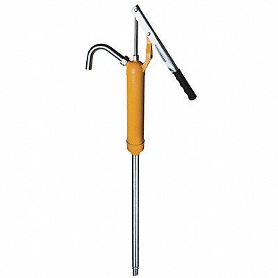 Hand Operated Drum Pump Action Type Lever Wetted Materials Steel Viton pH Range - Seal Material PTFE Viton Discharge Tubing Material Steel Piston Material Steel For Use On 15 to 55 gal Drums Max Temp 140 Degrees F Ounces per Stroke 10 oz Max Viscosity 700 cps Inlet Size 1 in Outlet Size 3/4 in Discharge Tube Outlet ID Size 5/8 in Discharge Tube Outlet OD Size 3/4 in Discharge Tube Length 8-5/8 in Suction Tube Length 17-3/4 in to 35 in