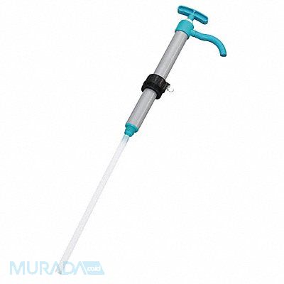 Hand Operated Drum Pump Action Type Piston Pump Body Material PVC Wetted Materials Glass PVC Viton Seal Material Viton Discharge Tubing Material PVC Piston Material PVC For Use On 15 30 and 55 gal Drums Max Temp 140 Degrees F Ounces per Stroke 8 oz Max Viscosity 4 000 SUS Inlet Size 1 in Outlet Size 11/16 in OD Discharge Tube Outlet ID Size 1/2 in Discharge Tube Outlet OD Size 0.4550 in Discharge Tube Length 4-7/8 in Suction Tube Length 23 in