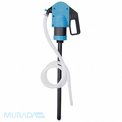 Hand Operated Drum Pump Action Type Lever Wetted Materials Polyacetal Polyethylene Polypropylene PVC Viton Seal Material Viton Gasket Material Polyacetal Discharge Tubing Material PVC Piston Material Polyacetal For Use On 15 to 55 gal Drums Maximum Head 6 ft Max Pressure 10 psi Max Temp 113 Degrees F Ounces per Stroke 17 oz Max Viscosity 1 000 SUS Inlet Size 3/4 in FNPT Outlet Size 3/4 In HB Discharge Tube Outlet ID Size 3/4 in