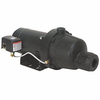 Shallow Well Jet Pump HP 1 hp Rated Voltage 115/230V AC Amps 15.6/7.8 Ejector Included Yes Flow Rate @ 10 ft Lift @ 30 PSI 16.5 gpm Flow Rate @ 10 ft Lift @ 40 PSI 12.3 gpm Flow Rate @ 10 ft Lift @ 50 PSI 2.5 gpm Max Suction Lift 25 ft Inlet 1-1/4 in NPT Discharge 1 in NPT Max Case Pressure 140 psi Max Inlet Pressure 75 psi Max Operating Temp 95 Shut Off Pressure 63 psi Overall Length 23 Overall Width 11 Overall Height 9 Includes Pump and Ejector Motor Enclosure ODP